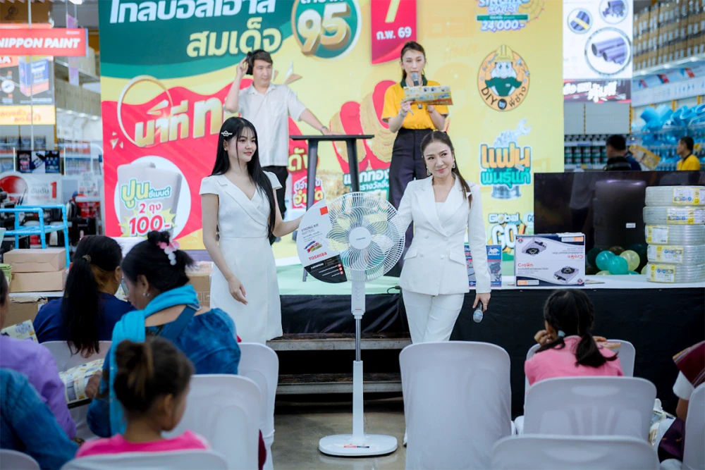 The opening ceremony was honored by the presence of Mr. Wirat Ratchacharee, Chief District Officer of Somdet, who presided over the ceremony. Mr. Apisit Rujikeatkamjorn, Chairman of Siam Global House Public Company Limited, delivered the opening remarks, outlining the objectives of the event and highlighting the company’s business direction. Global House remains committed to providing a comprehensive range of construction materials and home improvement products, while simultaneously supporting community development and strengthening the local economy.