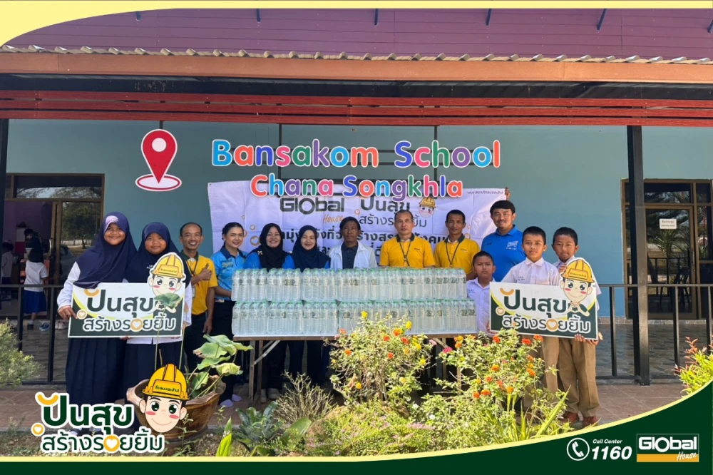 On this occasion, Siam Global House Public Company Limited, Chana Store, led by the General Manager together with the Store management team and employees, donated drinking water to Ban Sakom School. The donation was officially received by the school’s Deputy Director and faculty members.