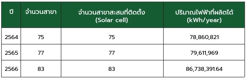 ตั้งแต่ปี 2560 บริษัทฯ มีนโยบายที่จะใช้พลังงานทดแทน จึงเริ่มโครงการติดตั้งแผงโซลาร์เซลล์บนหลังคาอาคารร้านค้าทุกสาขา (Solar Rooftop) เพื่อผลิตไฟฟ้าจากพลังงานแสงอาทิตย์ไม่ส่งผลกระทบต่อสิ่งแวดล้อม เนื่องจากเป็นพลังงานสะอาด อีกทั้งสามารถลดค่าใช้จ่ายในการดำเนินงานได้ ซึ่งในปี 2566 บริษัทฯมีหลังคาโซลาร์เซลล์ที่ผลิตไฟฟ้าได้ครบทุกสาขาแล้ว รวม 83 สาขา